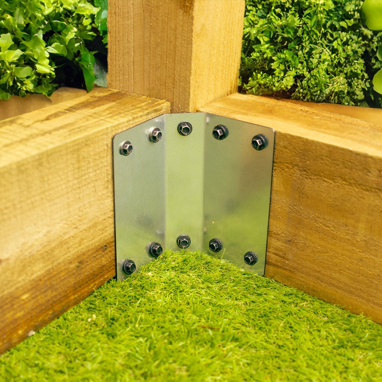 These Deck Framing Brackets are designed to facilitate the construction of robust decking frames using 6-inch (150mm) timber. They are also versatile enough for building four-sided planters, raised garden beds, and various other outdoor wooden structures that require strong corner support.