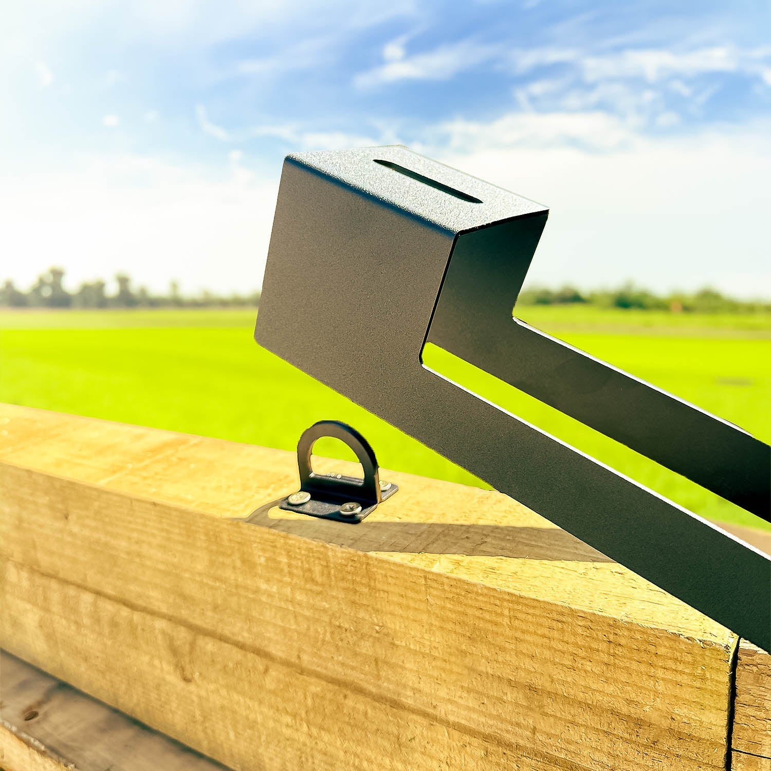 The Lockable Throw-Over Gate Loop Bracket is designed to secure standard 3-inch farm-style gates, providing enhanced security for your property. Installed on one gate, it allows for easy opening and closing by lifting the loop over the gates. The padlockable version includes two additional brackets, enabling you to lock the gate loop in place with a padlock for added security.
